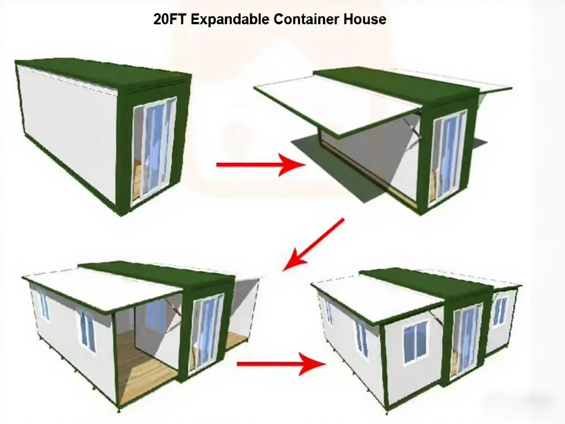 The Expandable Container House is a type of special designed permanent house.The container houses are manufactured in a factory before being shipped to the destination and all the fittings are all assembled in the factory. Therefore, it can be installed quickly and easily. The expandable house not only can be used for shops, offices, camping houses, but also can be flat granny house, family living house, security cabin and so on.